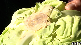 切り口の断面が黒くなってしまった白菜とキャベツは、道の駅などに並んでいてもお客さんがあまり買わず、回収し、捨ててしまうという。