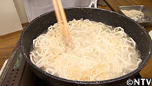 2.沸騰したお湯に油を入れ、麺を入れて茹でる。 |