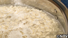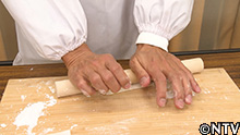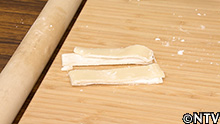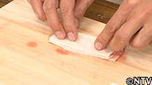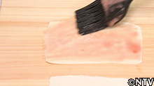 4.(1)で出てきた煮汁を薄くのばした生地に塗る。 |