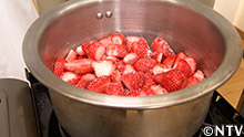 1.いちごに砂糖をなじませて弱火で煮てジャムを作る。 |