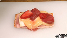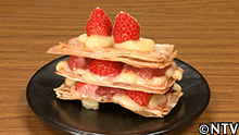 10.もう一層同様に重ね、さらに最後にうどんの生地をのせ、カスタードクリームといちごをトッピングしたら完成! |