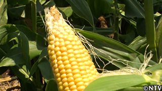トウモロコシは1株から2、3本の実ができるのだが、舩橋さんは、一番上の甘くて実が詰まったものだけを収穫。