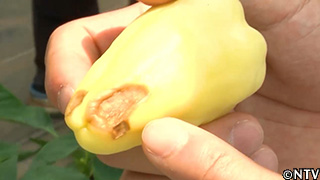 日に焼けてしまったものは、廃棄になるというバナナピーマン。