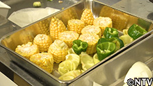 2.とうもろこし・バナナピーマン・玉ねぎなどの野菜を大きめにカットする。 |