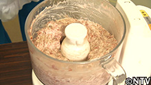 2.常陸牛に塩を振り、自然薯も入れてフードプロセッサーでミンチにする。 |