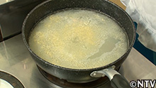 4.小麦粉をまぶし、型崩れしないよう串で固定し3分間茹でる。 |