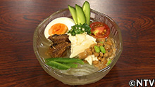 5.最後に、キュウリを飾り付ければ、大根麺で作った0円ネバネバ冷麺風の完成! |