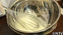 1.卵白に砂糖を加え、泡立て器で混ぜてメレンゲにする。 |