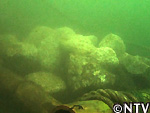 岩や石が多い環境を好むナマコの棲みかを作るため、観測台の下の海底に岩場作り。