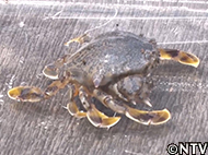 甲羅の輪郭が丸く平らで、甲羅に「金の線」の模様がある事から名が付いたとも言われている、砂地に生息するカニ。ハサミ以外の8本の脚はすべてオール状の遊泳脚で、これらを巧みに使って、水中を泳いだり、砂に潜ったりする。