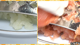 9.材料Bのすりおろしニンニク・バター・塩を入れる。 |