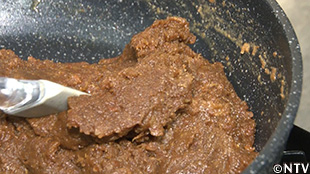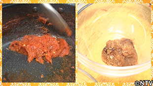 3.すりおろした玉ねぎとトマトを煮詰めてペーストを作る。 |