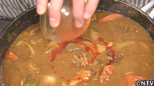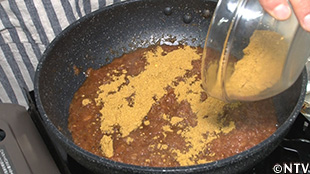 6.(5)にカレー粉を入れてペースト状にする。 |