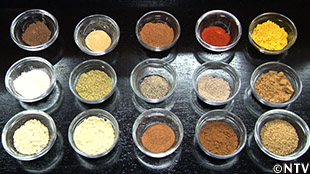 ・ターメリック… 小さじ3 ・クミン… 小さじ2 ・コリアンダー… 小さじ1/2 ・トウガラシ… 小さじ1/2 ・カルダモン… 小さじ1/2強 ・クローブ… 小さじ1/4強 ・シナモン… 小さじ1/2強 ・ブラックペッパー… 小さじ1/2 |