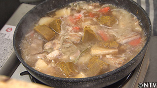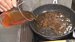6.調味料を入れた鍋に、水気を取った具材を入れてひと煮立ち(2分)させる。 |