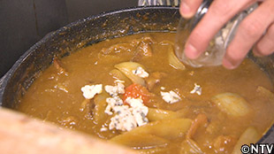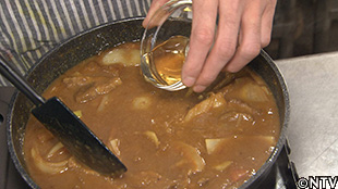 8.(7)にカレールーを入れ、溶けたら櫛切りした玉ねぎを入れて煮込む。 |
