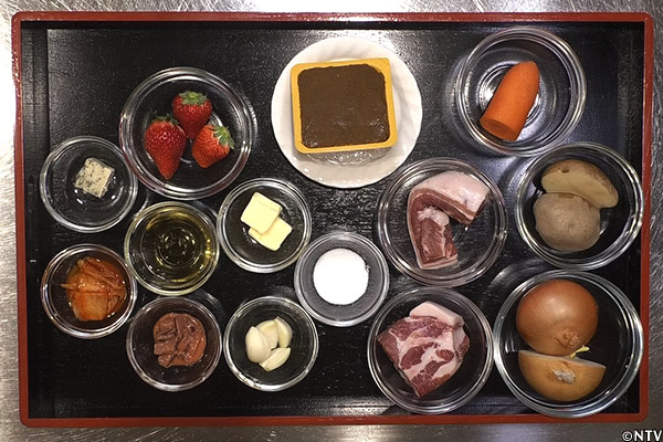 ・ジャガイモ(男爵)… 170g(1個半分) ・豚バラ肉(ブロック)… 150g ・豚肩ロース肉(ブロック)… 150g ・すりおろしニンニク… 13g |