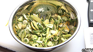 4.切った食材(大根・生姜・レモン合計100g)を塩もみ。 |