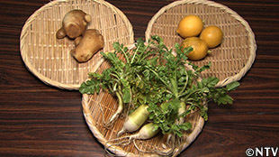 ・辛味大根の根…65g ・辛味大根の葉…5gほど ・ショウガ(皮つき)…15g ・レモンの皮…15g ・トウガラシ…少々 合計100g |