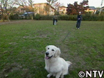 このロングリードをつけて遠くにいる犬の名前を呼び、来ない場合はハーフチョークチェーンの付いたロングリードを引っ張って、こちらに来るように気付かせる。