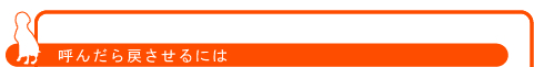 2人の内、1人がボールを持ちそのボールを投げる。 そのボールを犬が拾ったら、どちらか1人が名前を呼び、横にお座りをさせ、うまくできたらよく褒めてあげる。 これを繰り返すことで、ボールを拾い、名前を呼んだ人間のところもって行くといいことがあると覚えこませる。そうすることで、名前を呼ぶと戻ってくるようになる。