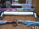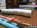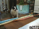 傘、トイレットペーパー、ティッシュ、プラスチックBOXで段差の違うハードルを作り、筋力トレーニングをする。 動かない生活が長く、筋肉の衰えたセニョール君には普通以上の運動が必要。 それは日常の家の中でも同じこと。 常に障害を意識させることで筋力アップをはかる。