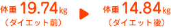最終日 14.84kg 遂に向かえたダイエット最終日。3ヶ月、というか約100日の成果が今日試されます。 私たちまでドキドキしちゃった体重測定の結果は… 14.84kg! 正直、1週間前までは15kgは切れないと思っていた私たちもびっくりの結果でした。 アレックス、お疲れさま! でも小林先生はもうちょっと痩せた方が… という事だったので、12kg目指して継続して頑張ろうね〜