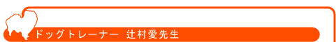 辻村愛先生 (ドッグトレーナー) 麻布大学獣医学部動物応用科学科卒業 麻布大学大学院獣医学研究科博士前期課程修了(動物人間関係学専攻) カリフォルニア州でダンバー博士に師事、家族全員が簡単に楽しく効果的に行なえるシリウス式トレーニングを学び、犬とその家族を対象にした日本初のトレーニングスクールを開校。