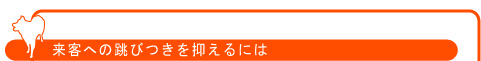 興奮している状態の時に指示をだしてあげることが大切。 興奮のスイッチがONになった時に、なんらかの指示を出してあげて、その指示に集中させてあげることで気持ちを落ち着かせてあげる。 訪問者が来たら“ハウス"の指示を出し、一度気持ちを落ち着かせる。 その後で訪問者に会わせてあげる。 そうすると、訪問者に会わせてもらう事がご褒美となり、指示を聞くようになる。