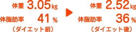 「目標達成!!」 2.52kg いよいよ、ダイエット結果撮影の日、目標体重に達しているか、STAFFみんな心配していました、結果は2.52kgと目標達成! 3ヶ月間のダイエット、もり蔵お疲れさまでした。 これからも太らないようトレーニングを続けていこうね。