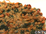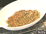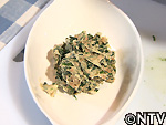 納豆とホウレンソウを混ぜ合わせて焼き上げたダイエットメニューで、納豆は低カロリーでその中に含まれる、体内脂肪を減少させる効果のある「レシチン」と、脂肪の生成を抑え血液中のコレステロールを洗い流してくれる作用がある「サポニン」が豊富に含まれている。