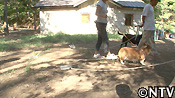 陸上でも負荷をかけた運動を行う。水を入れた500ミリリットルのペットボトルを引かせながら歩く。