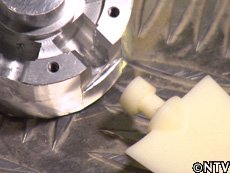 固定ピッチプロペラよりも、長いブレードを作る。 プロペラを伸ばすと空気をかく面積が広くなり、下に押し出す空気の量も増え、揚力が増す。 金属のグリップとサクラ製のブレード、長さは合わせて250センチ。 ブレードを作り上げた城島に対し、角度を変えるグリップ(根元)の部品は東京都大田区。48年間、旋盤(せんばん)工を続ける佐藤製作所を訪ねる。 炭素鋼の丸棒から旋盤で外径と滑らかな表面を削り出し、繊細な溝は切削油をさして摩擦を減らし、刃を深く入れていく。そして5時間かけ、直径5.5cmの円柱と角柱を組み合わせた部品グリップが出来上がった。 |