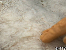 すると、家の表面に新たな大問題が見つかった。 尾下さん「ヌメヌメ感が無くなってゴムみたい」 1カ月以上水に浸けていたことで、徐々に吸水ポリマーが水中に流出。 家の表面は熱可塑性エラストマーだけになっていた。 水を吸う役目の吸水性ポリマーが流出してしまっては、家は水を吸わない。 つまりは、それ以上は大きくならないという事。 |