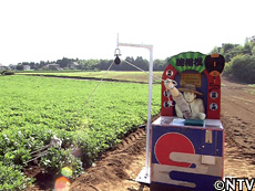 ならば、今度はパワー重視の仕事。 やってきたのは千葉県八街市、落花生の収穫をしていた『中川農園』。 落花生は、土の中で数多く広がって育つため、1株抜くのも重労働。 そために必要な力は、一升瓶を一本持ち上げる程度という。 さっそく、力を活かせるよう滑車を使い、畑の落花生に紐を放射線状につなぐ。 腕は伸ばして可動域を広げ、支点を作って「農作物収穫ロボット」の完成。 だが、実際は、期待していた程のパワーは見せられず、腕の動きも遅いため作業が進まず、ここでも不採用となった。 では、動きに注目し、まさるくんにハンマーを持たせて鐘を鳴らす仕事か。 しかし、実験してみると叩くと言うより擦るように、小さな音が鳴るだけ。 そこで、「球道くん」でお世話になった『株式会社 城南』に力をお借りする。 |