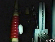 富山県工業技術センター内にある、ゴルフクラブやバットの開発研究を行っているスポーツ科学試験室にバットを持ち込み、計測機械でその性能を調べる。 凸凹が飛距離を生む3号は、凸凹によって球の変形が少なくなり結果的に反発力が上がる可能性大。 ホームランは角度が命、2号は、平面で打つのでホームランの出やすい角度で打てる。 シャフトがしなって脅威の飛距離、ホームランバット4号は、ヘッドスピードが上がっているので球が延びる。 それぞれ科学的なお墨付きを頂いた。 |