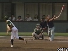 松岡「プロ野球選手みたいにでっかいホームランが打ちてえ」 そんな松岡の夢から始まった、野球の素人でもホームランが簡単に打てるオリジナルの“スーパーバット"づくり。 ホームランの飛距離を出すためには、反発力を生むバットのしなりが重要。そこで、松岡は達也と共に“スーパーバット"づくりの指南を受けようとバット製造のメッカ、富山県旧福光町のバット工場・エスオースポーツ工業を訪れる。 |