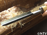 バットのグリップなどを加工する際、木の節に刃が引っかからない様、丸い刃で深く削りだせる“丸バイト"と、表面を滑らかかつ直線的に仕上げるための刃先が平らな“平バイト"がある。