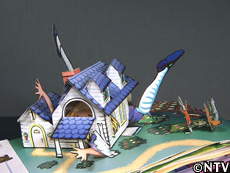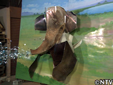 一方、松岡は市原ぞうの国で、アジアゾウとスキンシップ。 その巨体に松岡が求める動きは、立ち上がるゾウ。 立ち上がった2m50cmのゾウを写真に収め、それを基に絵本を制作。 松岡製作の飛び出す絵本、“立ち上がるアジアゾウ"は、体高2.5mのアジアゾウが立ち上がった瞬間を、しっかり飛び出させた。さらに細かい工夫も施し、鼻からはアジアゾウの噴水を再現した紙吹雪を見事に噴射。 |