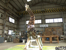 社長の田さんから教えて頂いたポイントは、3つ。 動物の大きさや動きを調査し、仕掛けにあった強度の紙を探して、仕掛け作りに入る。 まず、松岡が向かった先は、日本で最多のゾウの飼育数を誇る市原ぞうの国。 松岡が目指すのは陸上で最も背の高い動物、キリン。 そのスラッっとした姿、是非とも絵本に閉じ込めたい! 警戒心の強いキリンとスキンシップを図り、打ち解けた所で、メジャーで計測。胴体と首を合わせた体高は、5m45cm。 |