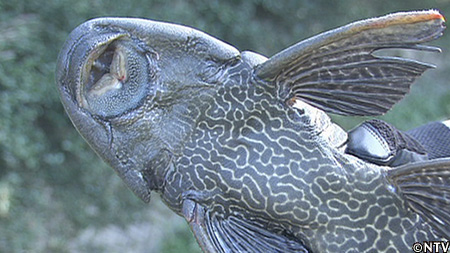 生物『マダラロリカリア』 原産地アマゾン川を中心とした南米が原産で、日本では観賞魚として輸入され販売されている。 問題沖縄では、同じコケを主食とするリュウキュウアユの復活を目指しているが、プレコがいる限り、復活は難しい。 |