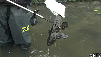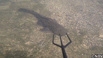 頭や鱗が硬いため、ヤスで突いても弾かれてしまう。 |