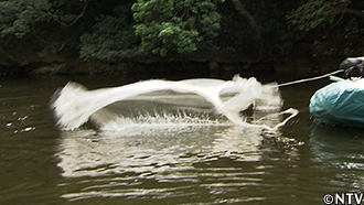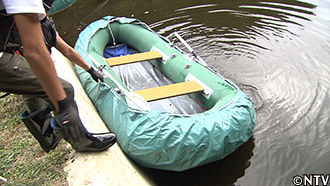 農業用の溜め池などの水中に生息するため、ボートで池の中心部まで渡る。 |