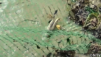 ただし、肋骨が柔らかく発達しており、小さな網目からでも、すり抜けてしまうため、罠を仕掛けるのも有効。 |