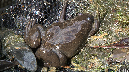 投網は水中の比較的浅い場所にいるオタマジャクシや若い小さな個体しか捕れない可能性が高く、子供を産む大きな個体を捕えるためには、池の底をさらうような方法がベスト。 |