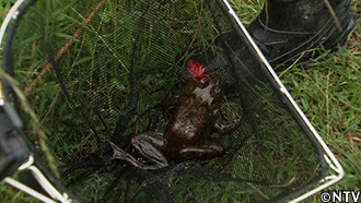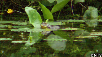 生物『ウシガエル』 原産地アメリカ原産。池沼などの止水、穏やかな流れの周辺に生息。 問題日本には、食用、養殖用として持ち込まれたが、それが野生化。 |