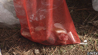 そこで、50m先のニオイを嗅ぎ分けるとも言われるほど鋭い嗅覚を利用し、大好物の魚をぶつ切りにし、網に入れて、川の上流に設置し、その匂いでおびき出す。 |