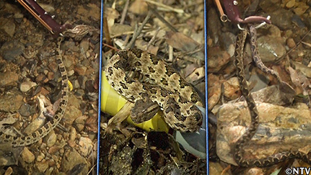 生物『タイワンハブ』 原産地中国大陸南部、海南島、台湾、ベトナムなど。 問題在来種であるホンハブの1.2倍以上の猛毒を持ち、スピード・ジャンプ力もホンハブ以上。 |