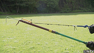タイワンハブに噛まれないように捕獲するために使うのは、ハブ捕り棒。 |