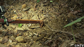 夜行性のタイワンハブは、日中は茂みや物陰の隙間などに潜んでいる。また、体温調節ができないため、日中は沢などの水辺近くに潜んでいることも。 |